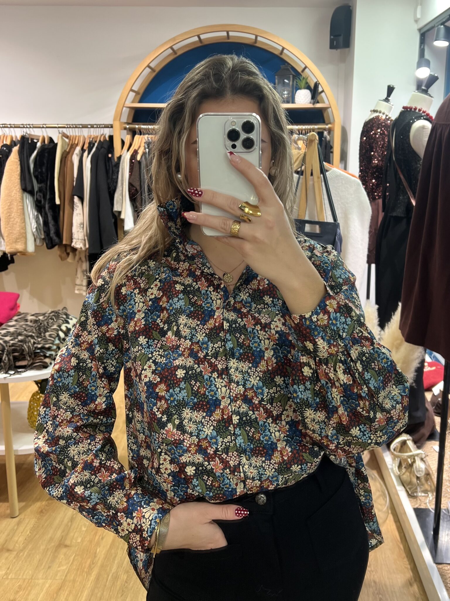 Blouse À Fleurs Col Collerette