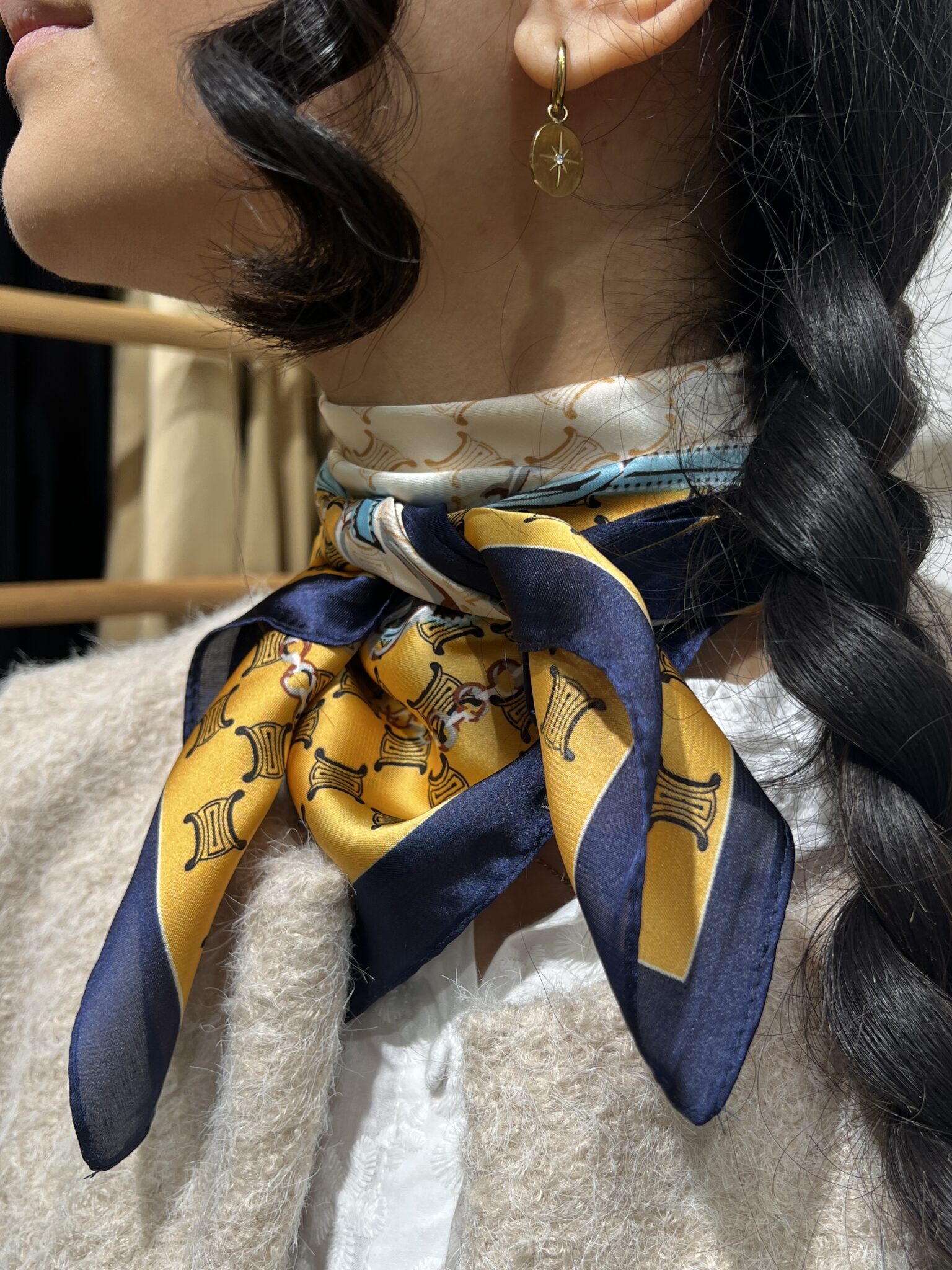 Foulard femme délicat aux reflets subtils, élégant et raffiné. Léger et fluide, ce foulard apporte une touche d’élégance naturelle à toutes vos tenues. Polyvalent, il se porte aussi bien autour du cou pour sublimer un look chic, que dans les cheveux pour une allure bohème et tendance.