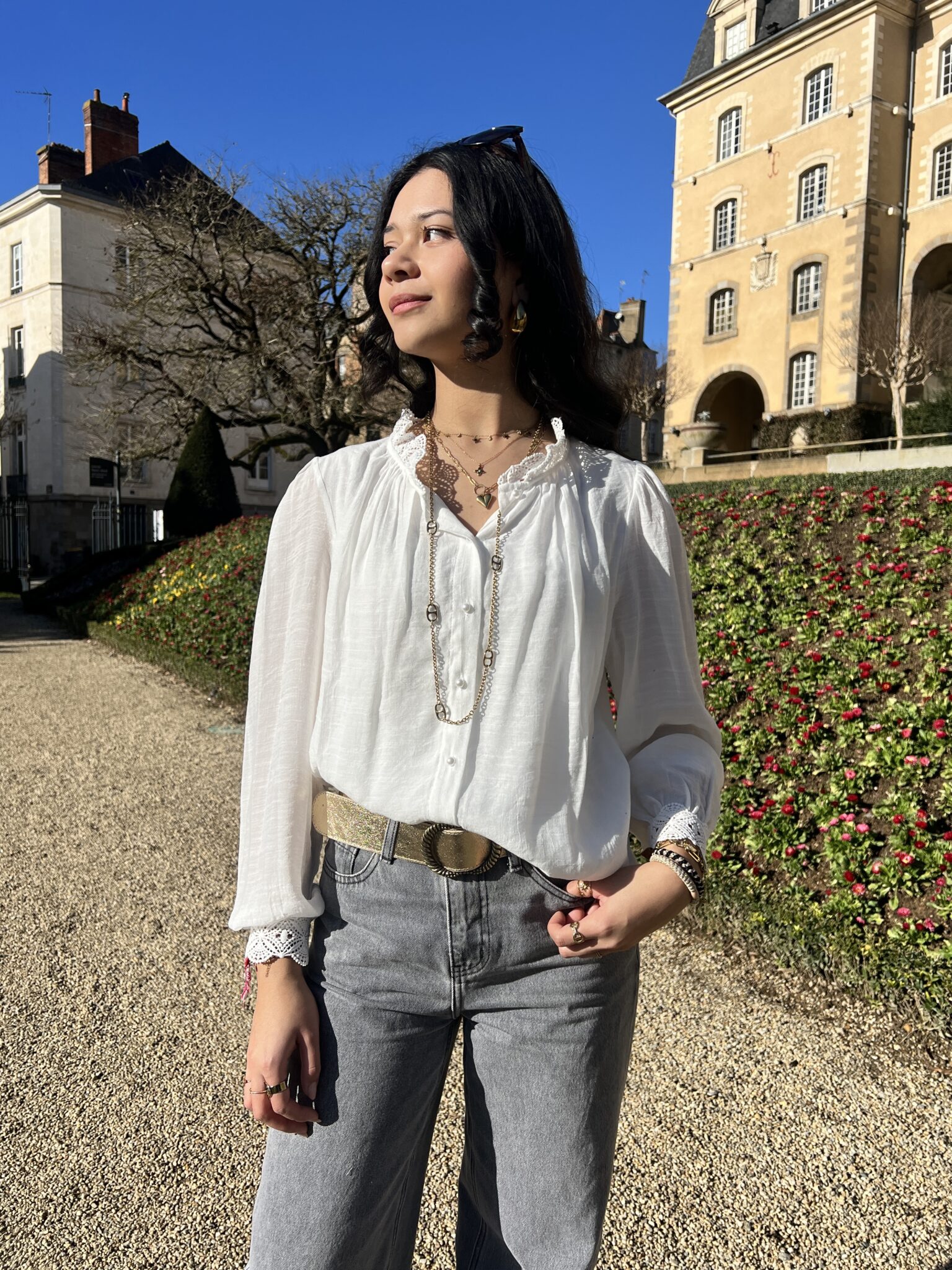 Chemise blanche à dentelle à détails fleurs