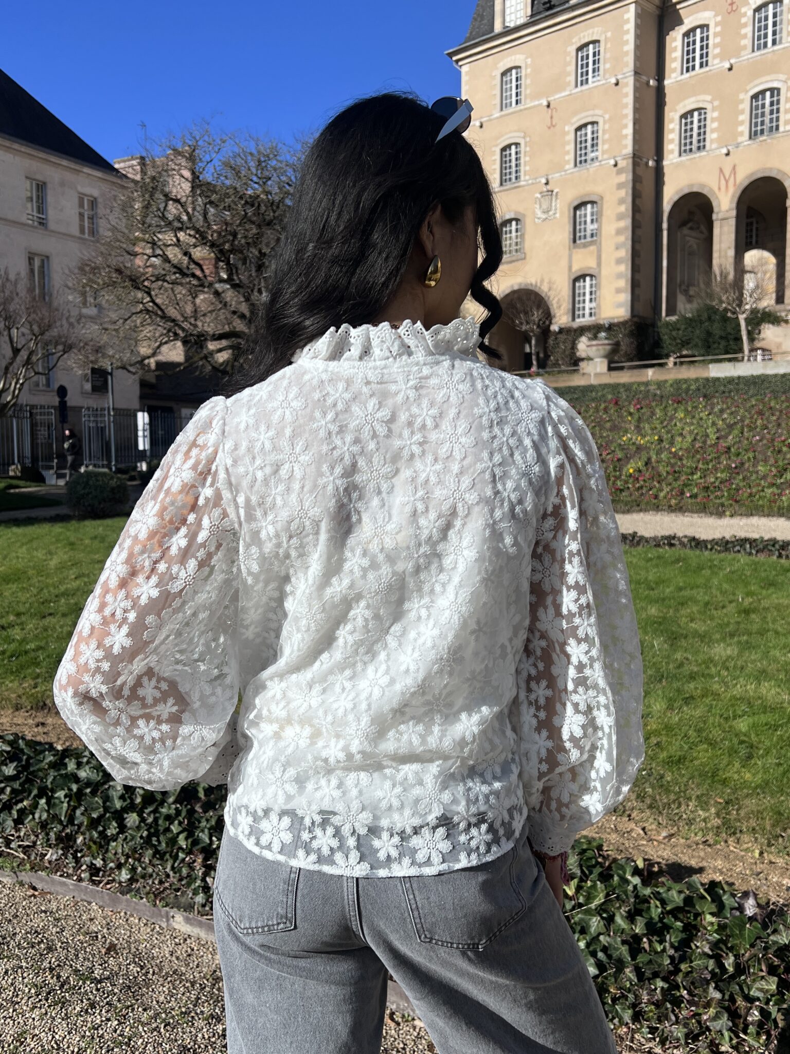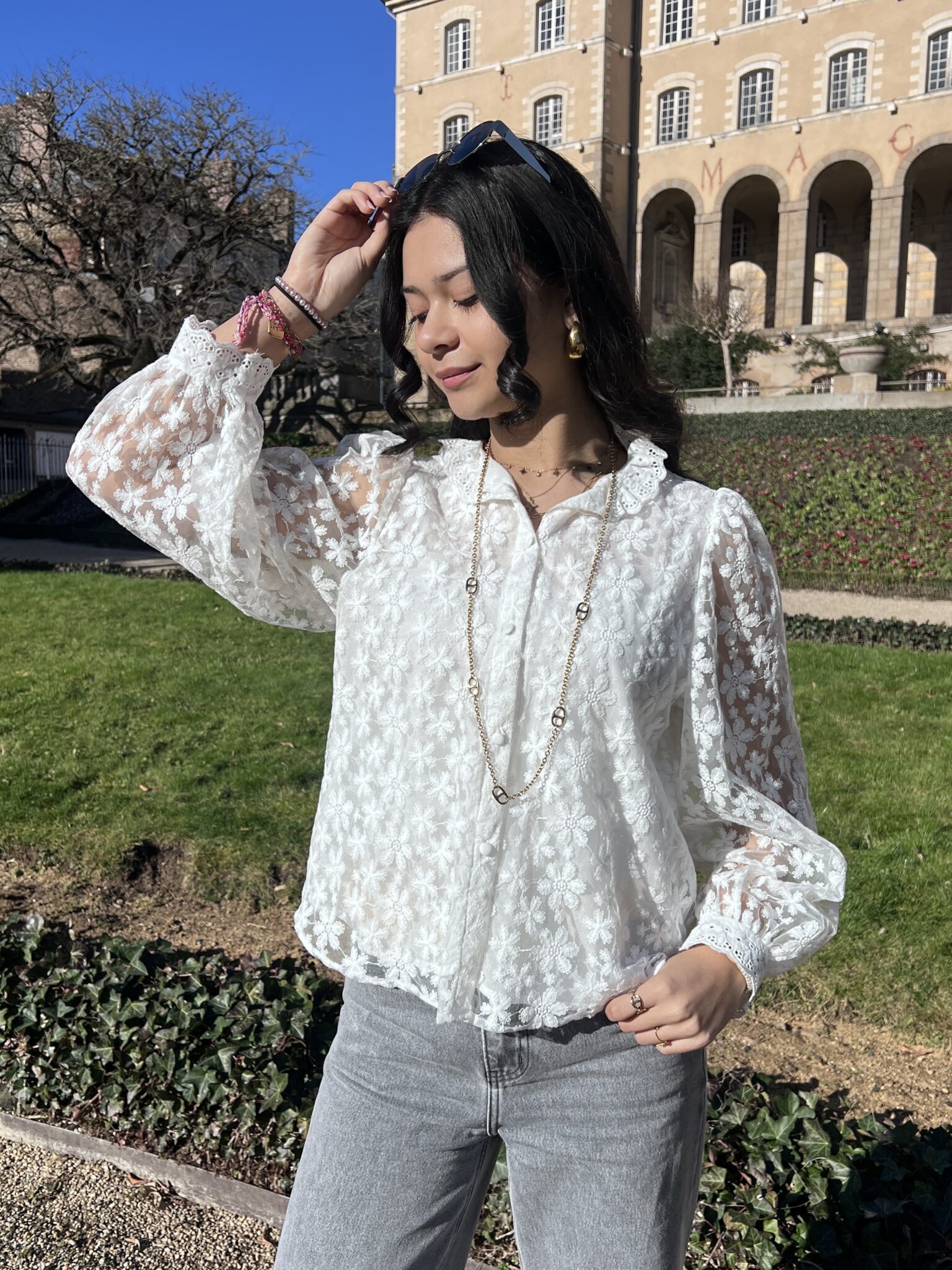 Chemise blanche à dentelle à détails fleurs
