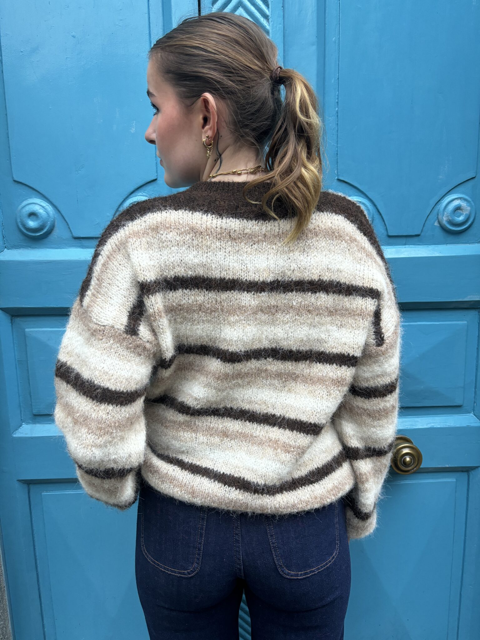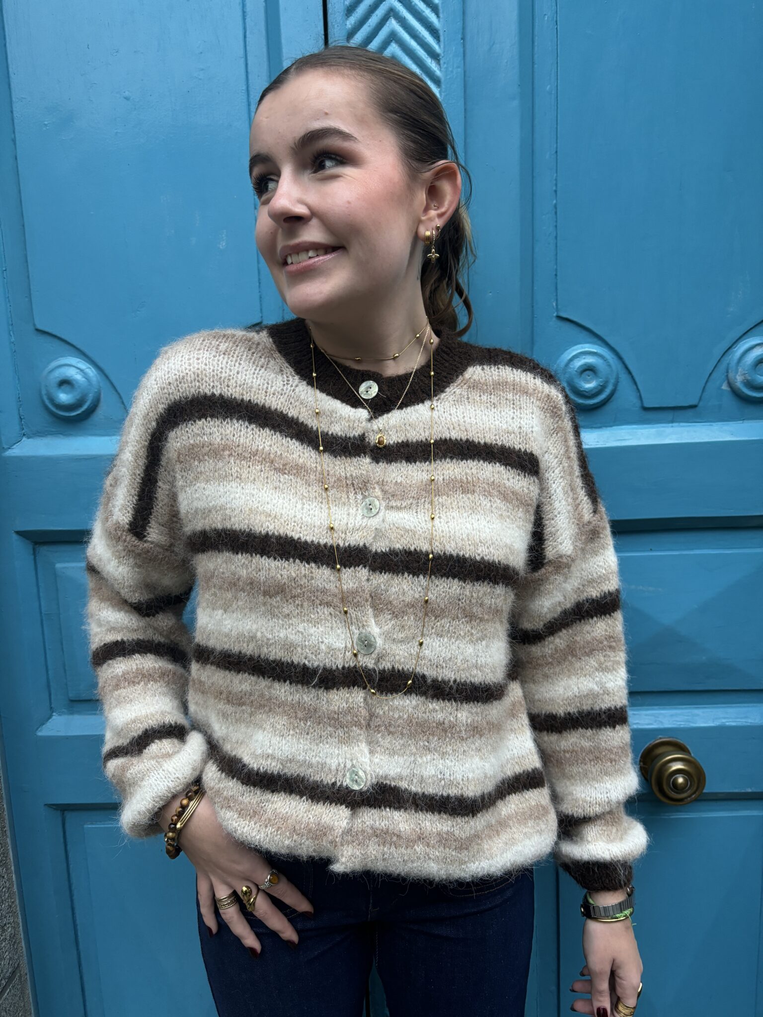 Gilet rayé, idéal avec un pantalon pour une tenue harmonieuse et décontractée