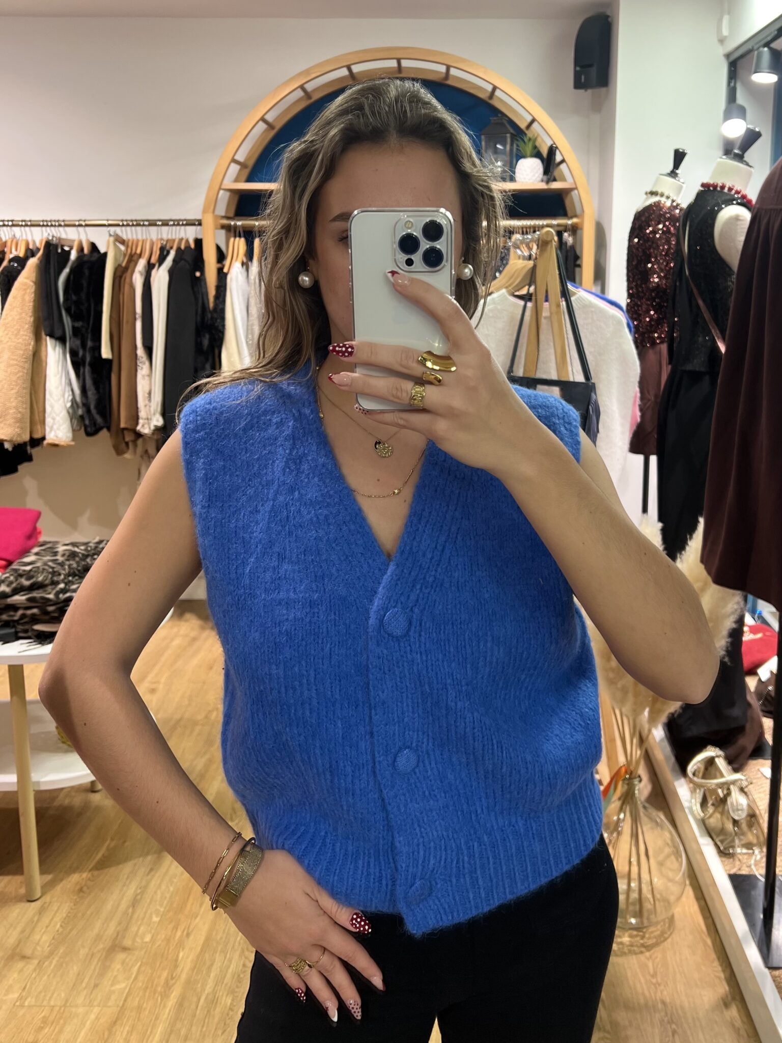 Gilet sans manches col, un gilet élégant et confortable à porter sur une blouse, une chemise ou directement sur la peau. Il présente des boutons à l’avant pour un style raffiné. Doux au toucher, il ne gratte pas et garde parfaitement la chaleur.