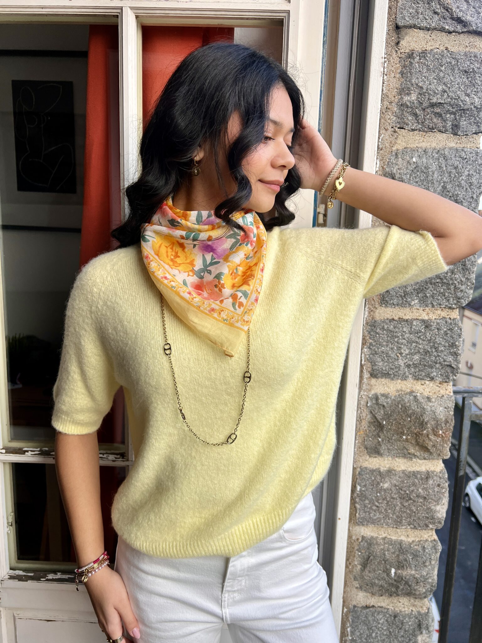 Pull jaune femme en baby alpaga, confectionné dans une maille ultra douce et légère. Ce pull en alpaga offre une chaleur naturelle tout en restant respirant et confortable au quotidien. Sa teinte jaune lumineuse apporte une touche éclatante à vos tenues d’automne et d’hiver.