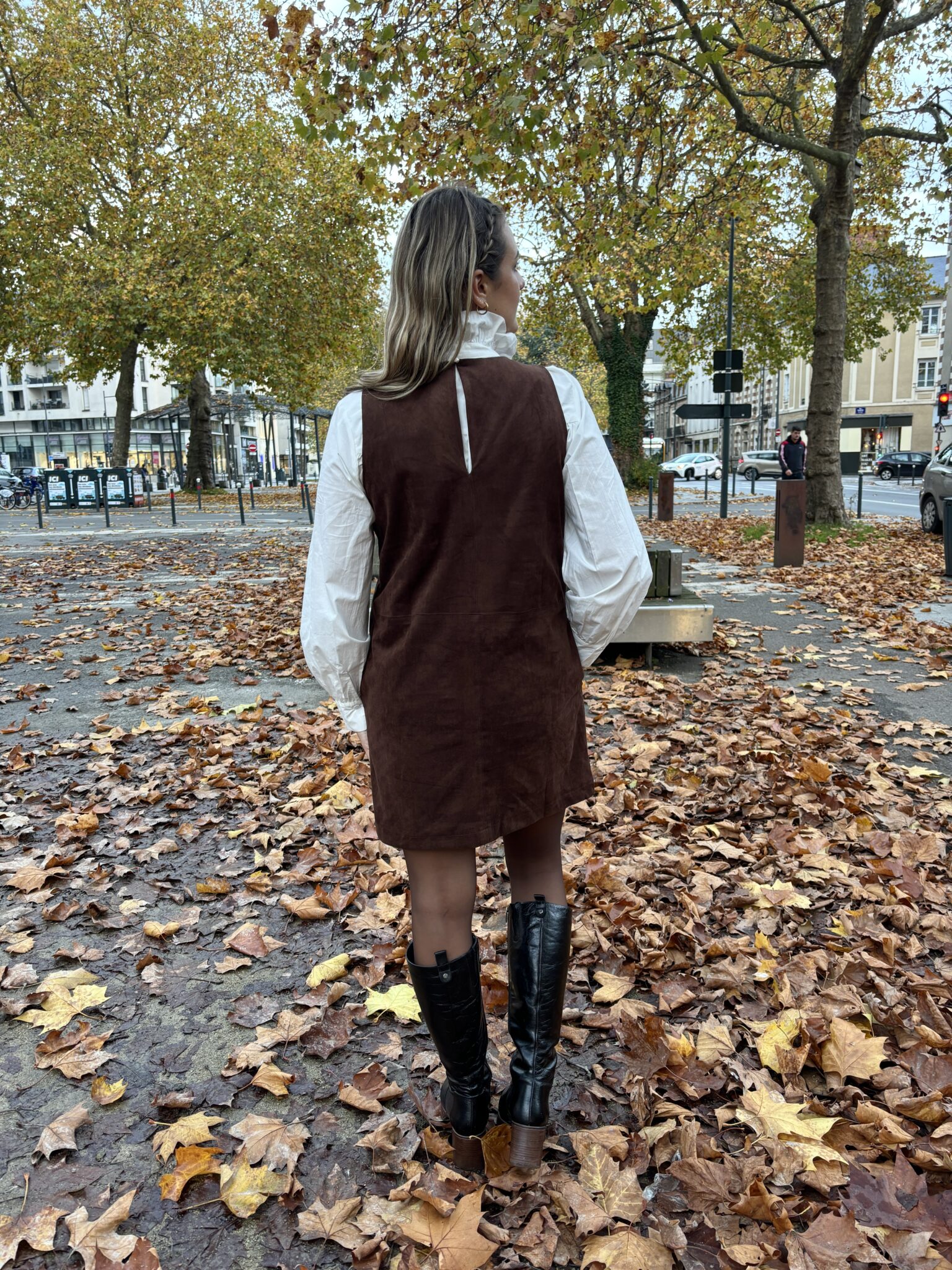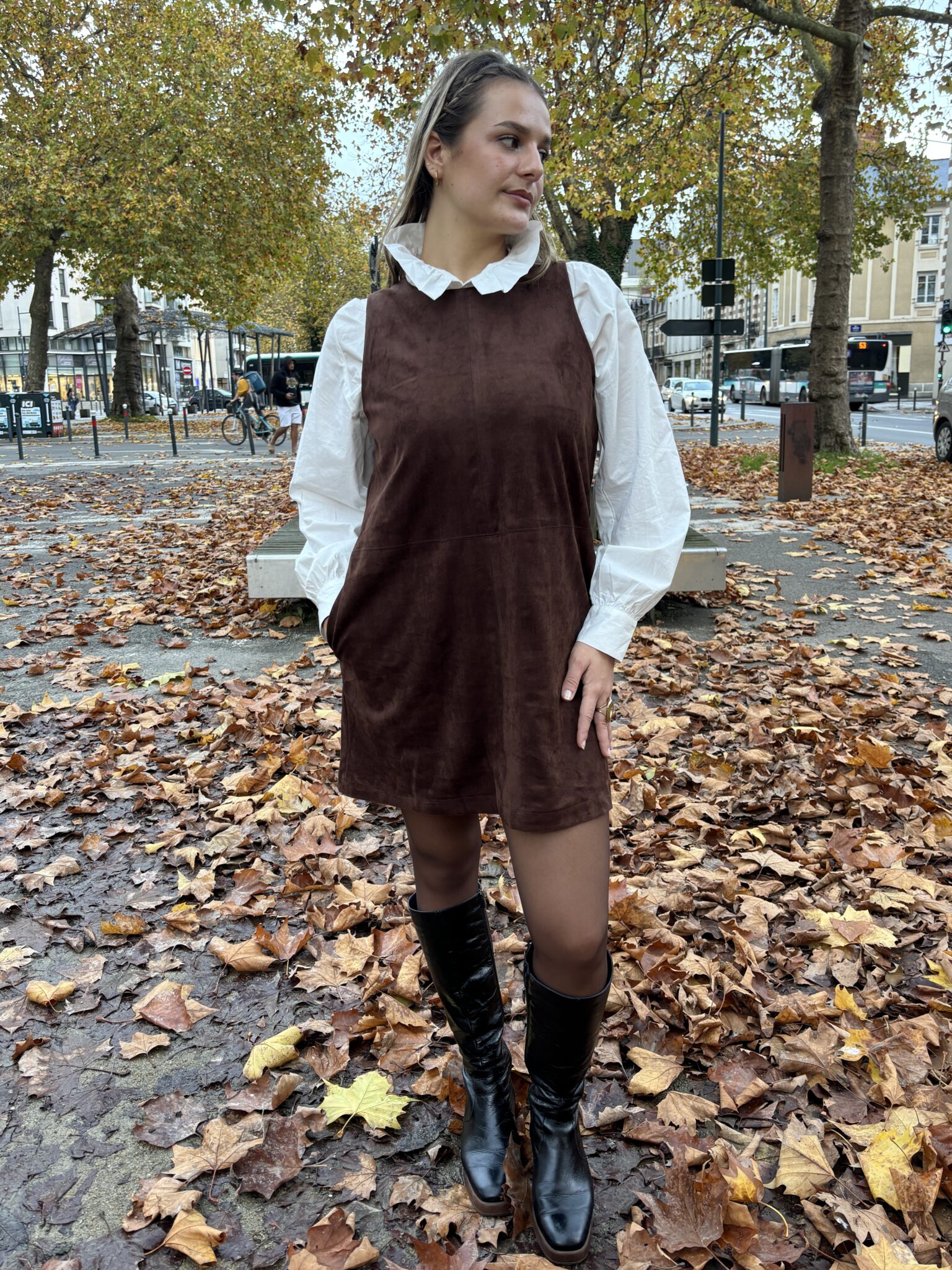 Élégante et intemporelle, cette robe en suédine chocolat facile à porter, elle offre un style à la fois chic et confortable, idéal pour la mi-saison comme pour l’hiver.